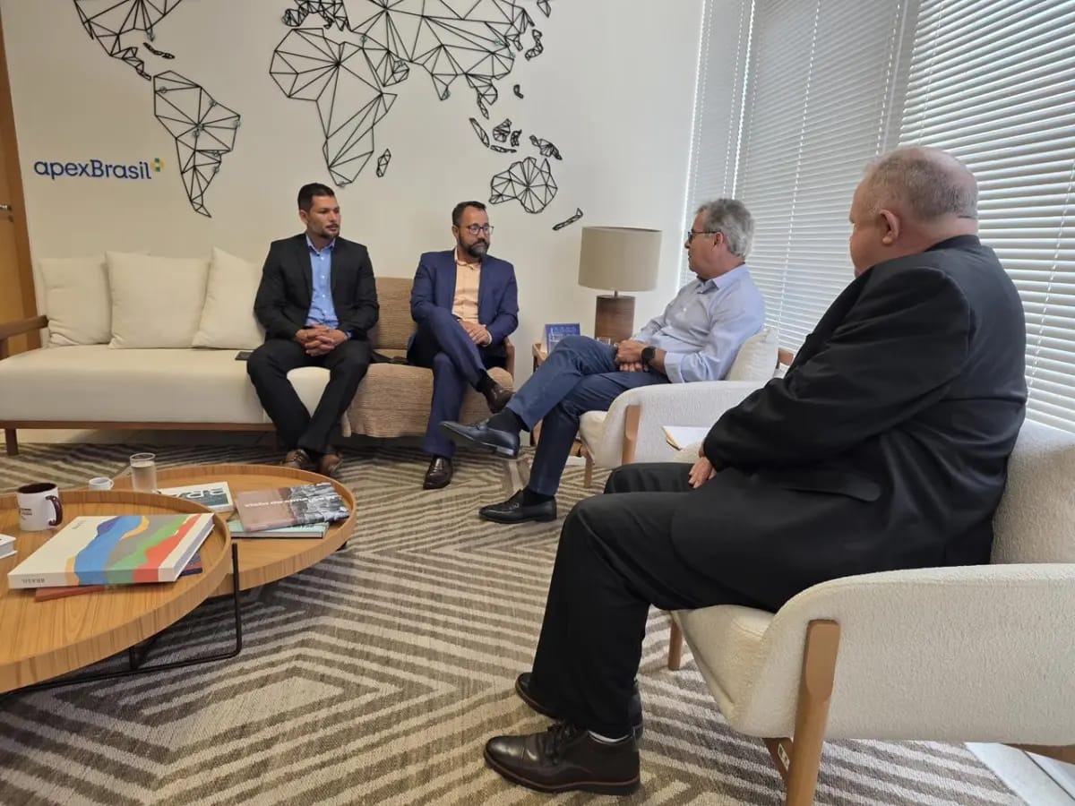 Brasília, DF – O presidente da ApexBrasil, Jorge Viana, recebeu nesta quinta-feira, 25, o prefeito de Feijó, Railson Ferreira, em Brasília, para discutir estratégias de desenvolvimento econômico para o município acreano, conhecido como a “capital do açaí”. O encontro, que contou com a presença do vice-prefeito Juarez Leitão, do secretário Ronaldo e de outras lideranças locais, teve como foco central a atração de investimentos e a ampliação das oportunidades para a população de Feijó.