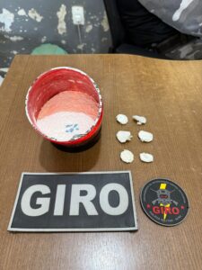 Policiais militares do Grupamento de Intervenção Rápida Ostensiva (GIRO), do 8º Batalhão, apreenderam um pote vermelho contendo uma substância esbranquiçada,…