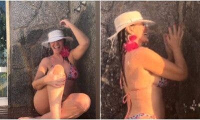 Luma de Oliveira, de 59 anos, aproveitou este domingo (17) de sol para se refrescar com um banho de ducha e compartilhou fotos do momento de...