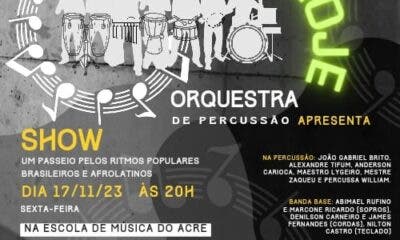 A Orquestra Percussão se apresentará na noite desta sexta-feira, 17, na Escola de Música do Acre, localizada na Avenida Central, conjunto Tucumã, capital acreana, às 20h....