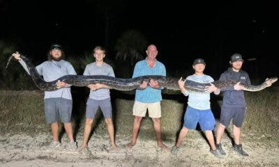 Caçadores capturaram em Panhandle (Flórida, EUA) uma píton birmanesa de 5,2 metros de comprimento, 58 centímetros de circunferência e quase 90 quilos, a segunda maior já...