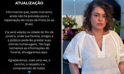 Não há previsão para a repatriação do corpo de Preta Gil ao Brasil. A informação foi divulgada pelas redes sociais de Gilberto Gil nesta segunda-feira, 21....