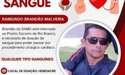 Os amigos do condutor socorrista do Serviço de Atendimento Móvel de Urgência (SAMU) Raimundo Brandão Malveira reforçam a campanha de doação de sangue ao trabalhador, mas...