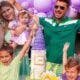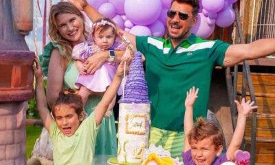 A festa teve tema da Rapunzel, princesa da Disney, com direito a bolo em formato da torre do desenho. Além da pequena, o casal tem também...
