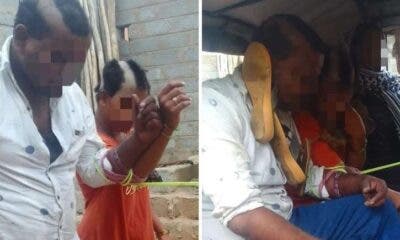 O que você faria se descobrisse uma traição? Uma mulher raspou o cabelo do marido e da suposta amante, os amarrou e colocou os dois descalços...
