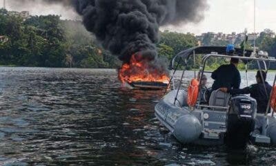 Uma lancha com quatro passageiros à bordo, todos da mesma família, pegou fogo enquanto navegava pela Represa Guarapiranga, na zona sul de São Paulo, na manhã...