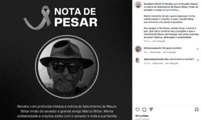 A cidade de Rio Branco amanheceu hoje sob o peso de uma triste notícia: o falecimento de Mauro Bittar, irmão do senador Márcio Bittar. O prefeito...