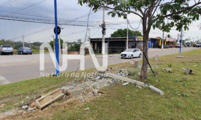 Um motorista ainda não identificado perdeu o controle de uma caminhonete branca e colidiu contra um poste de energia na Estrada da Floresta, na madrugada deste...