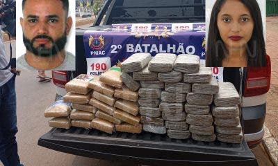 A Polícia Militar do Acre prendeu Eduardo Pereira do Nascimento, 29 anos, e Kauane de Souza Sérgio, 22, e apreendeu aproximadamente 50 quilos de drogas na...