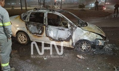 Um carro modelo Ford Fiesta Sedan, de cor prata e placa NAA-2590, foi destruído por um incêndio na noite desta terça-feira (27), na rotatória de um...