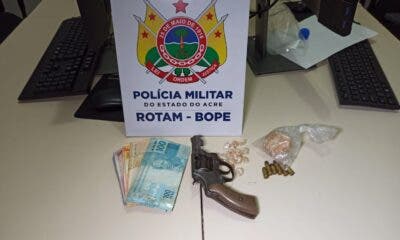 Drogas, uma arma de fogo e uma quantia em dinheiro foram apreendidas na noite de sexta-feira (18) na rua Fortaleza do Abunã, no loteamento Praia do...