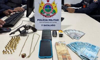 Dois homens foram presos na madrugada desta segunda-feira (30) após realizarem disparos de arma de fogo e tentarem fugir da Polícia Militar em Rio Branco. A...