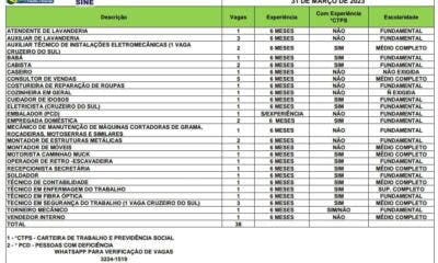 O Sistema Nacional de Emprego do Acre (Sine) está ofertando 38 vagas de emprego para esta sexta-feira, 30. Dessas, 20 são para quem possui nível fundamental,...