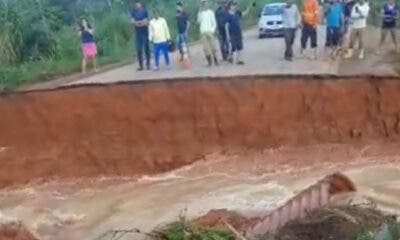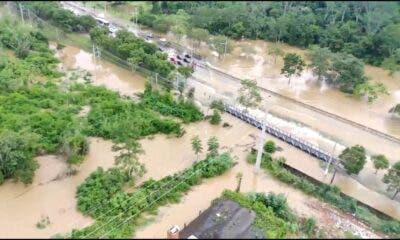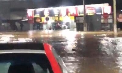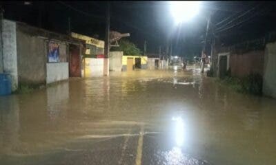 O igarapé Dias Martins também transbordou por conta da forte chuva que caiu sobre a capital nesta quinta-feira, 23, e deixou o trecho próximo ao ‘pinicão’....