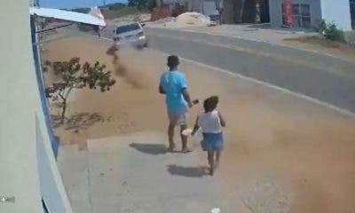 Um homem e uma criança escaparam de um atropelamento ao pararem na calçada para pegar um objeto que estava no chão. Um vídeo que circula nas...