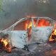 Um carro foi completamente destruído por um incêndio após uma explosão registrada na tarde desta segunda-feira (13), na BR-364, a 32 km de Sena Madureira, no...