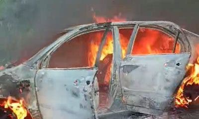 Um carro foi completamente destruído por um incêndio após uma explosão registrada na tarde desta segunda-feira (13), na BR-364, a 32 km de Sena Madureira, no...