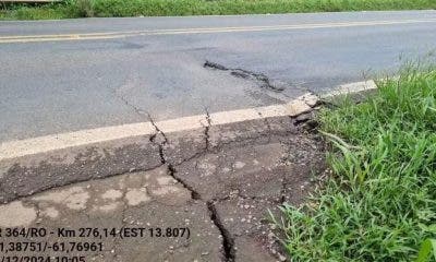 Motoristas que trafegam pela BR-364, entre Cacoal e Presidente Médici (RO), estão preocupados com uma fissura na cabeceira de uma ponte no local. Imagens da rachadura...