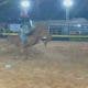 Um locutor foi pisoteado por um touro durante a narração do rodeio amador que abria a festa do Primeiro Encontro de Cowboys, em Paranaíba, município a...
