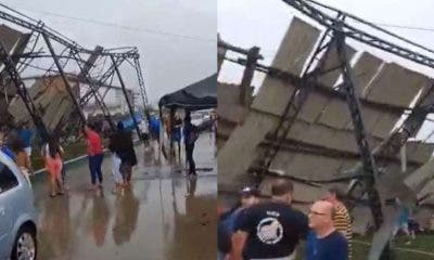 Uma árvore de Natal flutuante foi derrubada por um temporal em Maricá, no Rio de Janeiro, nesta segunda-feira, 16. A queda causou a morte de uma...