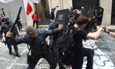 Professores e estudantes protestaram do lado de fora da sede da Bolsa de Valores (B3), em São Paulo, contra a privatização de escolas. Dentro do prédio,...