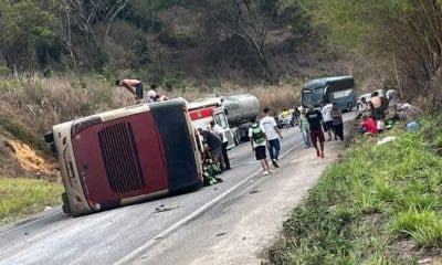Um ônibus com estudantes e monitores tombou na BR-418, em Carlos Chagas, Minas Gerais. Ao todo, havia 58 ocupantes no veículo, sendo 2 deles motoristas. De...