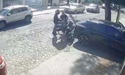 Câmeras de segurança e testemunhas registraram o momento em que o motorista de um Porsche tenta agredir um entregador de aplicativo e empurra sua motocicleta em...