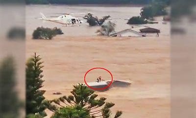 Um vídeo registrado pela Brigada Militar do Rio Grande do Sul mostrou o momento em que uma equipe em um helicóptero tenta salvar duas pessoas e...