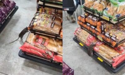 Um cliente registrou um vídeo mostrando um rato escalando as prateleiras, entre os pães, em um supermercado situado no bairro da Cidade Nova, em Ananindeua, nesta...