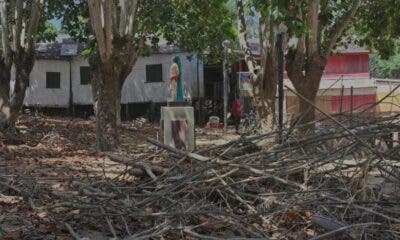 Após a vazante, a Praça de São Sebastião em Xapuri permanece soterrada pela areia, mesmo quase 15 dias após o pico da segunda maior enchente do...