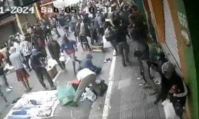 Imagens de câmeras de monitoramento flagraram o momento em que uma loja foi furtada por um grupo de pessoas, por volta das 6h de sábado, 27. O...