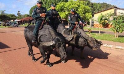 Muito além de carros, motos ou até mesmo cavalaria, quem faz as vezes das viaturas da Polícia Militar na Ilha do Marajó (PA) são os búfalos....