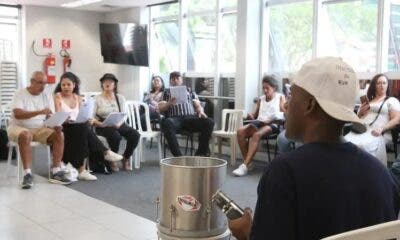 Um alongamento do corpo, um aquecimento na voz e uma apresentação pessoal. E então a sala é inundada com uma voz conjunta. “Êô Êô Abalô Capoeira...