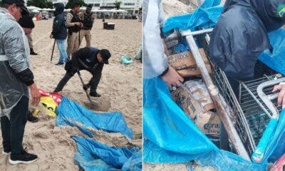 Agentes da Secretaria de Ordem Pública e Guarda Municipal encontraram, no sábado (26), um depósito ilegal de bebidas enterrado na areia de Copacabana, praia na zona...