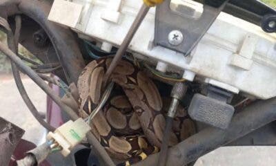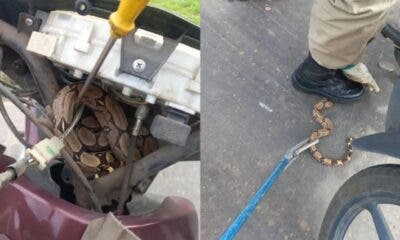 Um fato bastante inusitado foi registrado por moradores do município de Cruzeiro do Sul (AC), uma jibóia estava presa em um motor de uma motocicleta. Segundo...