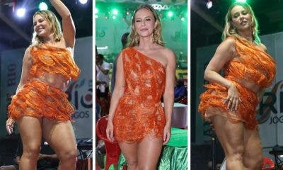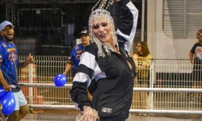 A ex-Pânico Fernanda Lacerda precisou terminar o ensaio técnico da Gaviões da Fiel de blusão após o figurino que ela estava usando ter apresentado um problema...