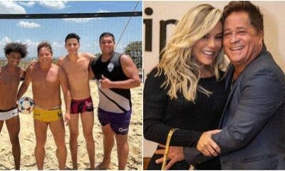 Leonardo, de 60 anos, foi fotografado só de sunga enquanto jogava uma partida de futevôlei com amigos na praia, e Poliana Rocha, de 46, elogiou o...