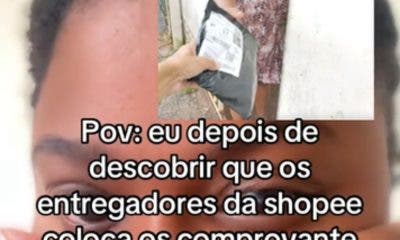 Uma mulher viralizou com um vídeo curto no TikTok em que aparece mostrando a foto feita por um entregador da Shopee no momento em que ela...