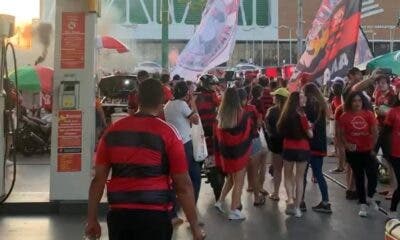 Torcedores movimentam as ruas antes do jogo do Flamengo contra o Audax Rio, na noite desta quarta-feira (17), na Arena da Amazônia, na zona centro-oeste de...
