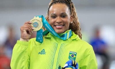 Rebeca Andrade ganhou a medalha de ouro nos Jogos Pan-Americanos, em Santiago, no Chile, nesta terça-feira, 24. A brasileira alcançou uma média de 14.983 (15.333 e 14.633) na...