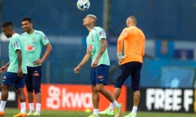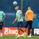 A seleção brasileira masculina de futebol participou nesta quarta-feira (14) do primeiro treino com o grupo completo (23 convocados) no Centro de Treinamento do Espanyol, em...