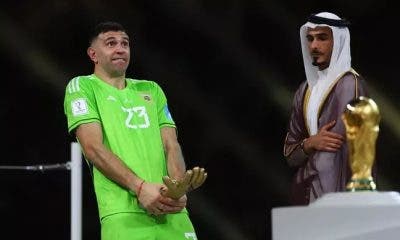 Emiliano Martínez, goleiro da Argentina, comemorou de uma forma inusitada a conquista do Luva de Ouro, prêmio de melhor goleiro da Copa do Mundo do Catar, neste domingo,...