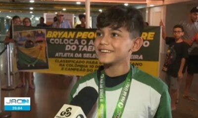 O taekwondista acreano Bryan Azevedo, 11 anos, desembarcou em Rio Branco (AC), nessa terça-feira (20), com medalha de ouro no peito. O atleta foi campeão na...