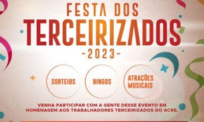A Festa do Trabalhador Terceirizado acontece no próximo sábado, dia 22 de julho, às 16h na Concha Acústica, localizada no Parque da Maternidade, em Rio Branco....