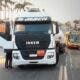 Uma carreta Volvo do tipo Julieta, com dois tanques contendo 40 toneladas de combustíveis, parou parte do trânsito na zona central no início da manhã desta...