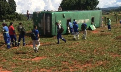 Um ônibus que levava cerca de 40 trabalhadores liberados mais cedo por causa do jogo do Brasil pela Copa do Mundo tombou na GO-338 e deixou...