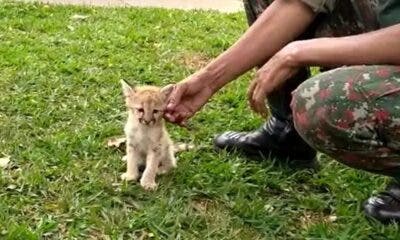 CLIQUE AQUI para ver o vídeo. Um filhote de onça-parda foi resgatado, nesta quarta-feira (14), após aparecer sozinho em uma fazenda, em Rio Verde de Mato Grosso...