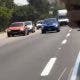 Dois carros em movimento se emparelham no meio de uma rodovia, em plena luz do dia. Com motores modificados, os veículos avançam a mais de 100...