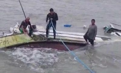 Um vídeo compartilhado nas redes sociais mostra o momento em que tripulantes de um barco pesqueiro salvam outros cinco pescadores que naufragaram na foz do Rio...