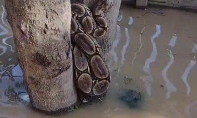 Durante ajuda às famílias que estão sofrendo com a cheia do Rio Acre, a voluntária Michelle Oliveira, do projeto Conexão do Bem, flagrou uma jibóia próximo...
